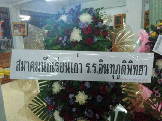 ผู้บริหารคณะครูโรงเรียนอินทุภูติพิทยาและตัวแทนคณะกรรมการสมาคมนักเรียนเก่าโรงเรียนอินทุภุติพิทยาได้เข้าร่วมฟังพระสวดอภิธรรมคุณแม่เฟี้ยม ดิษฐ์แก้ว ณ วัดคลองตาล มารดาของ ผอ.ชอบ ดิษฐ์แก้ว โรงเรียนมะต้องประชาสรรค์ |