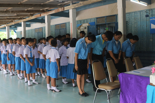 ขอทรงพระเจริญ ด้วยเกล้าด้วยกระหม่อมขอเดชะ ข้าพระพุทธเจ้า ผู้บริหาร คณะครูและนักเรียนโรงเรียนอินทุภูติพิทยา