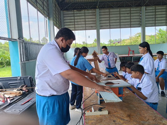 ลดเวลาเรียนเพิ่มเวลารู้ โรงเรียนอินทุภูติพิทยาได้จัดให้มีการทำไม้พาเลทเพื่อให้มาทำประดิษฐ์เป็นของใช้ต่าง ๆ เช่น นาฬิกา โต๊ะ เก้าอี้