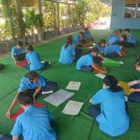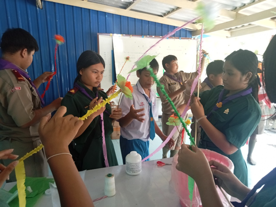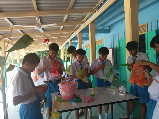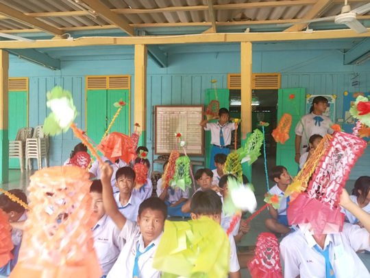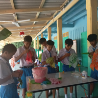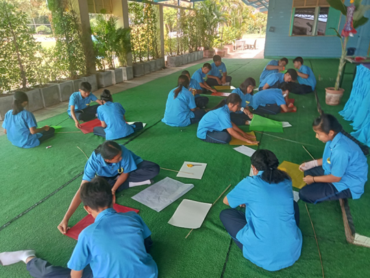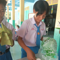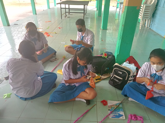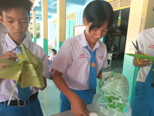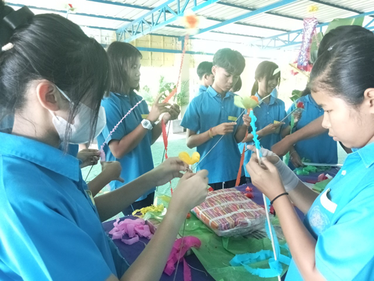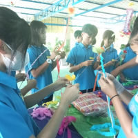 ทางโรงเรียนอินทุภูติพิทยา ได้จัดการเรียนเสริมลดเวลาเรียนเพิ่มเวลารู้ ให้นักเรียนได้ศึกษาเกี่ยวกับการตัดพวงเต้าลั้ง เพื่อสร้างอาชีพและรายได้ให้กับครอบครัว